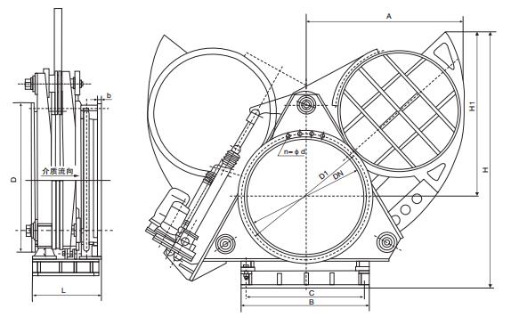 1、本閥由左右閥體、扇形閥板、不銹鋼波紋管、電動驅動裝置、電動夾緊裝置等部件組成;